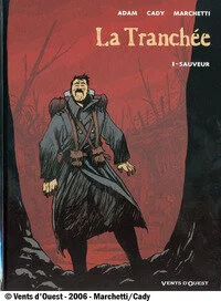 Ce jour est donc le jour idéal pour vous conseiller DE NE SURTOUT PAS ACHETER le tout nouveau livre de Adam, Cady et Marchetti. La Tranchée, aux éditions Vents D’ouest, n’est qu’un énième récit de bande dessinée sur le sujet, sans saveur, ni projet graphique, tout au plus un vague fumet de poésie romantico-merdique sur la culpabilité, au texte empreint d’une légèreté que ne renierait pas un pigeon atteint de la grippe aviaire.
